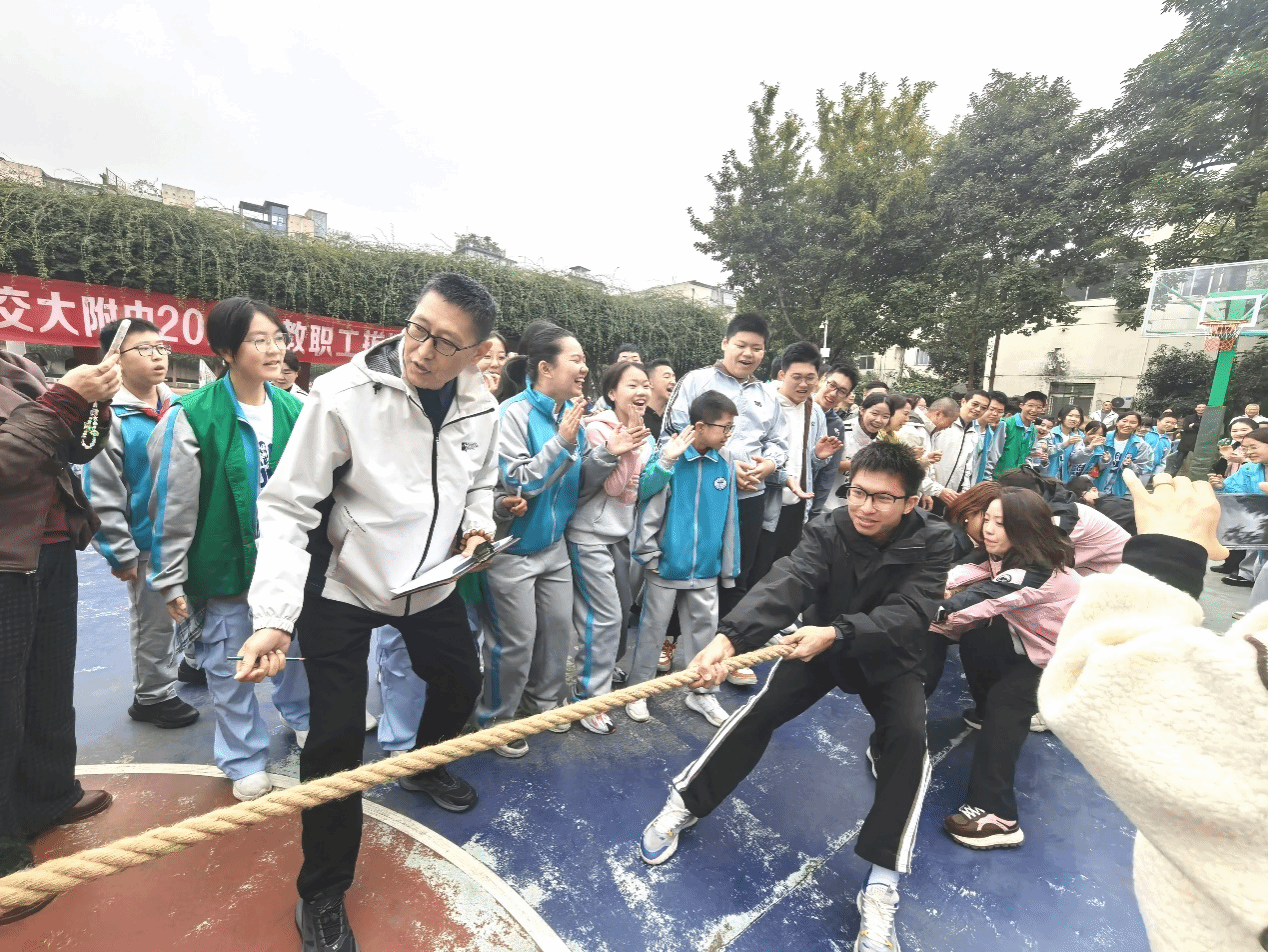 一根绳,凝聚一股劲;一个组,汇聚一条心。为丰富教职工的文体生活,增强团队凝聚力,营造积极健康、奋发向上的校园氛围,我校于2025年10月30日,在学校操场举办了主题为“凝心聚力,绳彩飞扬”的教职工拔河比赛,吸引了广大教职工踊跃参与。